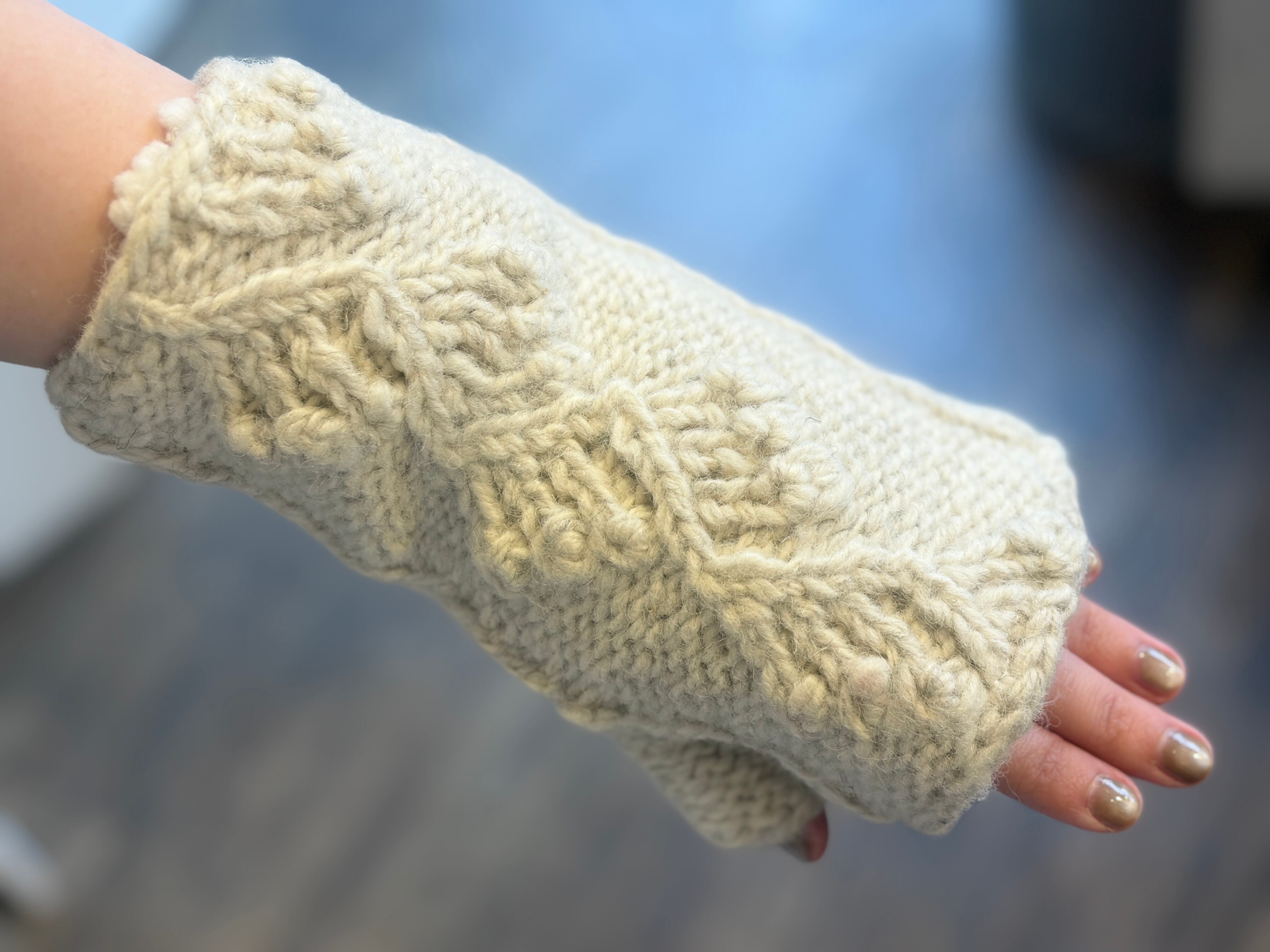 ネパールのハンドメイドニットハンドウォーマーです。