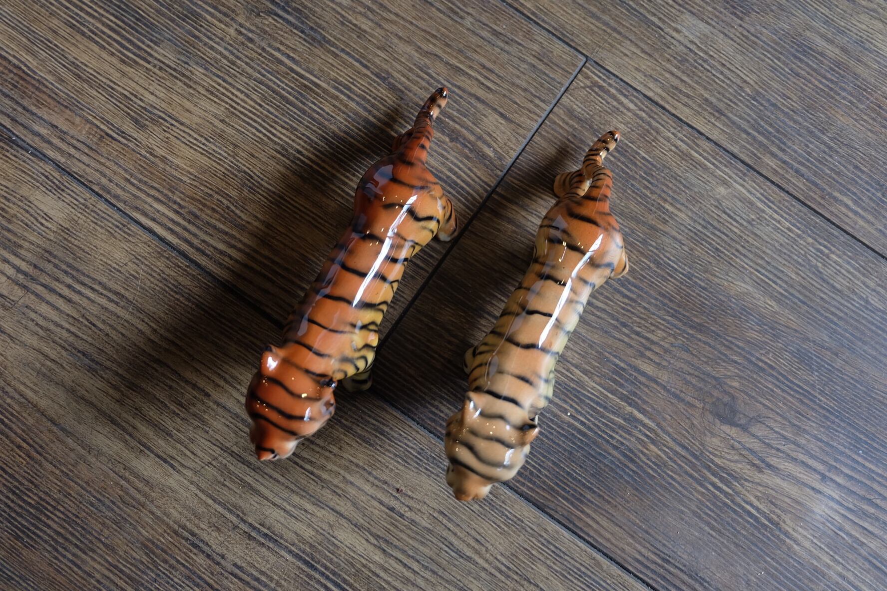 タイ北部のチェンマイからやってきた、セラミックの虎のオブジェです。