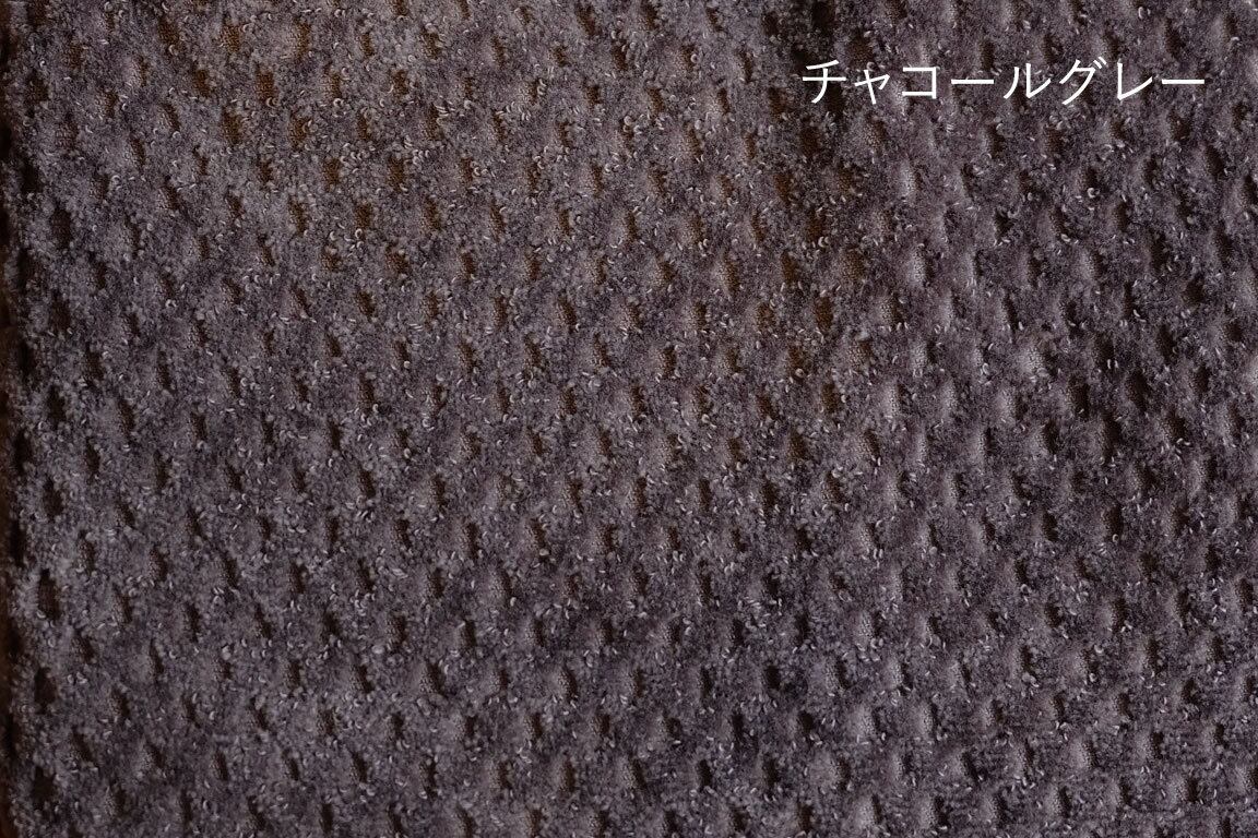 さらに、生地にはパイルとノンパイルの凹凸組織があり、それらの全体感が独特の優しい表情を醸し出しています。